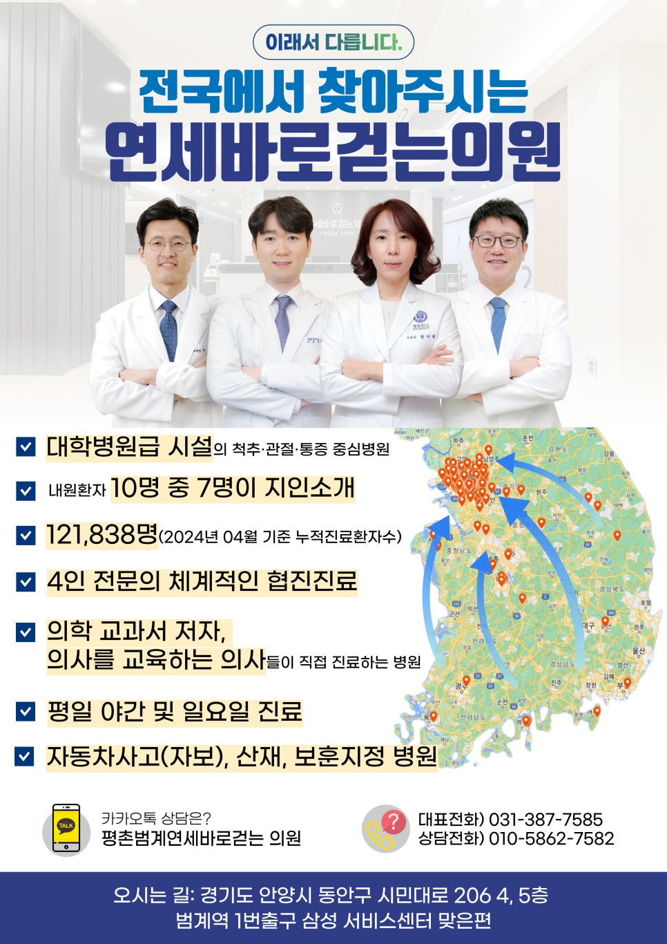 범계동 정형외과 연세바로걷는 의원 [원무과] / 간편 보험 청구 범계동에 위치한 정형외과 연세바로걷는 의원은 전문성과 친절한 의료서비스로 지역 주민들에게 신뢰받는